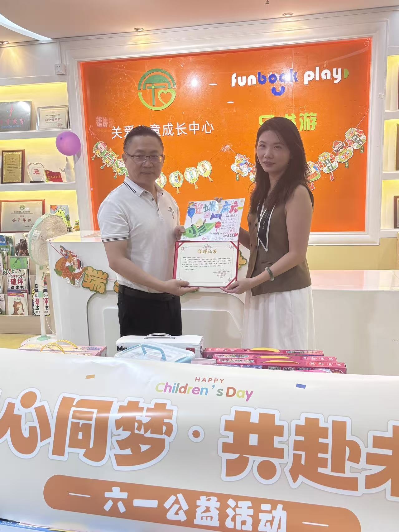 为了表达对康哲药业善举的诚挚感谢,关爱儿童成长中心向康哲药业代表颁发了捐赠证书。这份证书不仅是对企业爱心行动的认可,更是对双方携手关爱儿童成长的见证。同时,孩子们还献上了亲手制作的礼物,用童真和感恩传递着内心的喜悦。